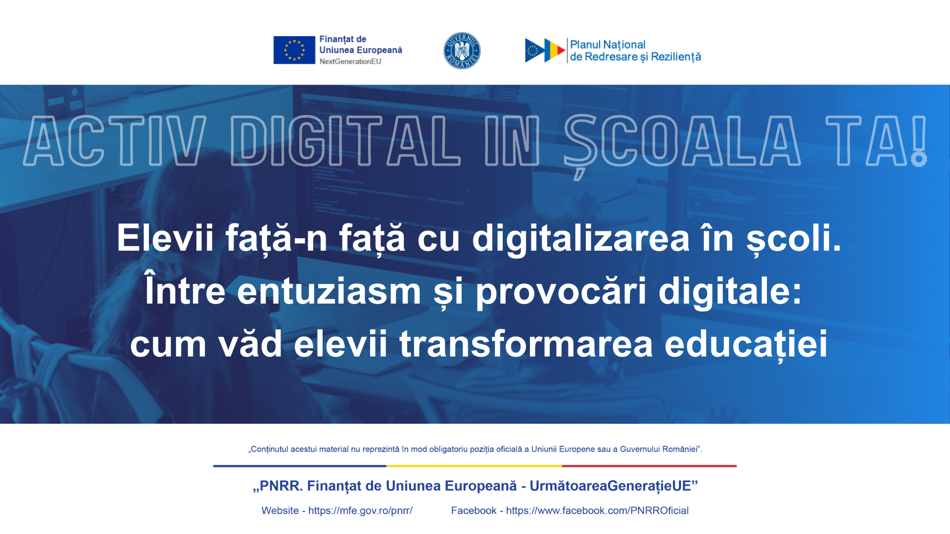 Proiectul „Activ Digital În Școala Ta!”, cod PNRR ID_23, este implementat de Asociația GO-AHEAD în parteneriat cu Casa Corpului Didactic a Județului Maramureș și Casa Corpului Didactic Brașov, fiind finanțat prin Planul Național de Redresare și Reziliență (PNRR), apelul Pedagogie digitală pentru cadrele didactice din învățământul preuniversitar.
